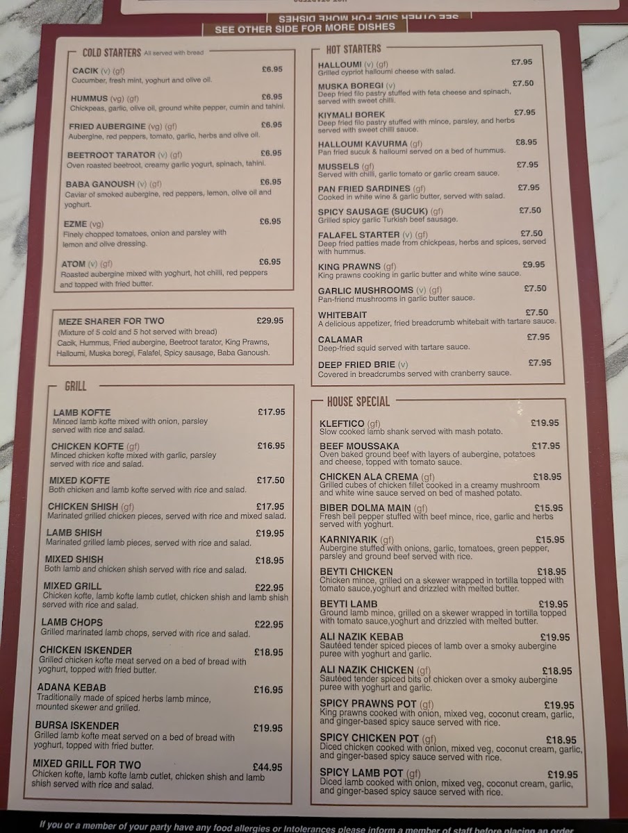 If you're in Durham and craving authentic Turkish cuisine, the Turkish Kitchen Meze and Grill Menu, located at 66 Saddler St, Durham DH1 3NP, is a must-visit. Nestled in the heart of the city, this restaurant offers a true taste of Turkey, with a wide range of dishes that capture the essence of traditional meze and grilled delights.